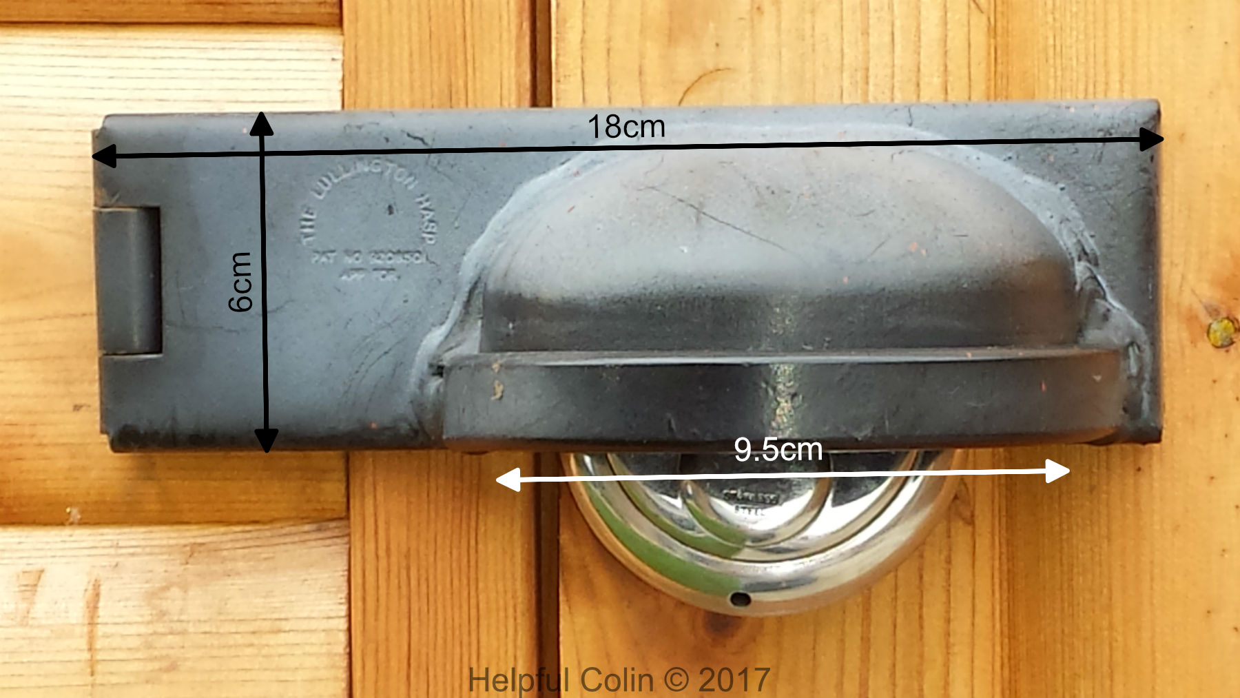 These are reasons why the staple welded to a plate cannot easily be used and an eyebolt is easier to fit. I did find the eyebolt only just fitted through the rectangular hole in the hasp after I filed it down to size.