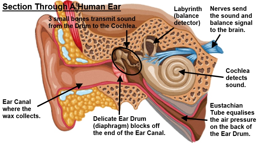 It goes on to describe how this is a more pleasant and more efficient procedure than syringing. If you haven’t seen it here is the cross section through a human ear: